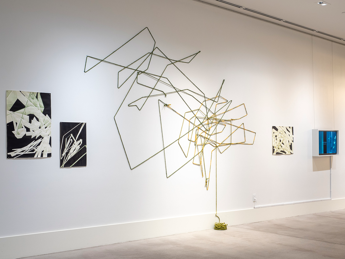“I was installing a large new wall drawing made of dyed sisal rope, as well as some very large photographs, so during the installation period, there was no hiding from the guests and staff,” Rob shared. “They got to see the installation process in detail, including changes and mistakes. But this also led to many great conversations with people curious about the work, its meaning, and the process, which I loved. The excitement of all the staff for the new exhibit was very evident, which was fun and gratifying.”