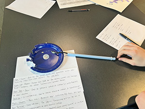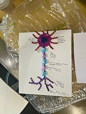 Students were challenged to use only materials they could find at home — anything from string and pipe cleaners to pasta and Play-Doh — to construct their own models of neurons. Presenting their creations in small groups, they explained each neuron’s structure and function.