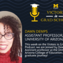This week on the Victors in Grad School podcast we are joined by Dawn Demps, Assistant Professor at University of Arizona College of Education. We talk about her own educational journey leading from an untraditional path to getting her Bachelors degree, being a community activist and then continuing her education to getting her Doctorate and now teaching others.