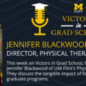 You might be in graduate school, or maybe you’re looking at the that light at the end of the tunnel Come in at you as you’re getting ready to be done with graduate school as well. But no matter where you’re at, there are things that you can do to find in that journey that you’re on, and that’s what this podcast is all about. This podcast is all about helping you to find success in the journey And helping you to learn from other individuals that have gone before you, that are that are here to help you to be able to Share what they learned along the way and are here to help you to find some things that may help you as well. That’s why every week I love bringing you different guests, different people that have gone before you that have gone on this journey. They come from all kinds of different backgrounds, all kinds of different majors, And they have all they all have the one thing in common, which is they went to graduate school before you, and they have figured out how to find success. So I’m really excited to be able to talk with you every week and to be able to bring these different guests to you. And this week, we got another great guest with us, Dr. Jennifer Blackwood is with us. And Dr. Blackwood is the Director of the Physical Therapy program, and a professor at the University of Michigan Flint, and She has been at the University of Michigan Flint for quite a few years.